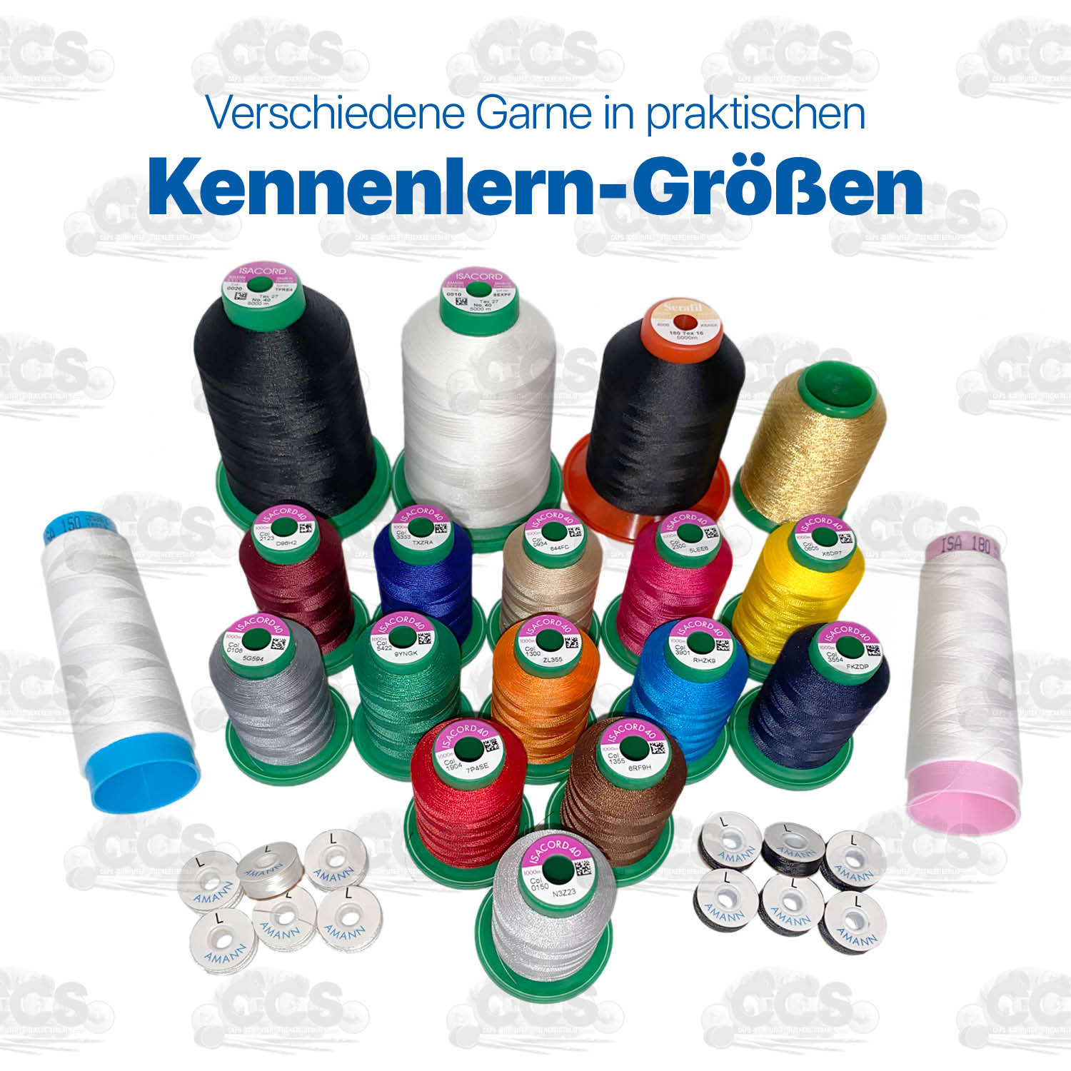 • zwei Kurzmaßspulen Unterfaden in der Stärke Isa 150 und Isa 180