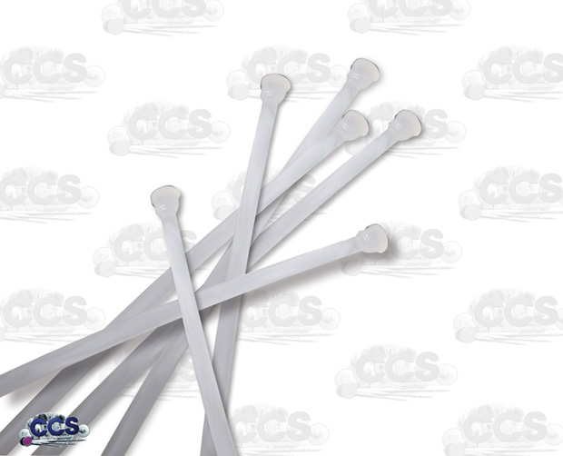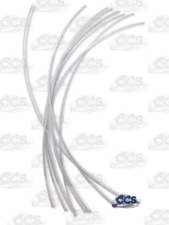 Elastische Kunststoff-Führung mit 2 kugelförmigen Enden und kleinem Einschnitt zum Einklemmen des Garns. Hiermit lässt sich der Oberfaden der Stickmaschine ganz leicht durch den Spiralschlauch der Garnführung fädeln.