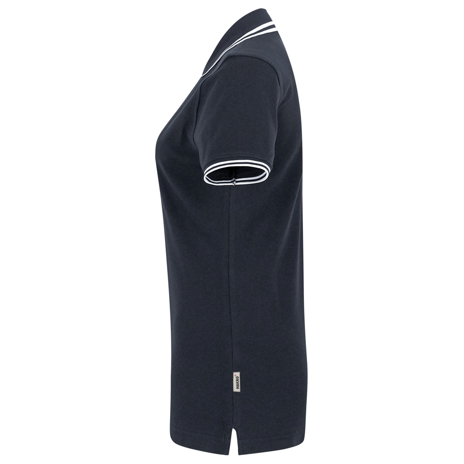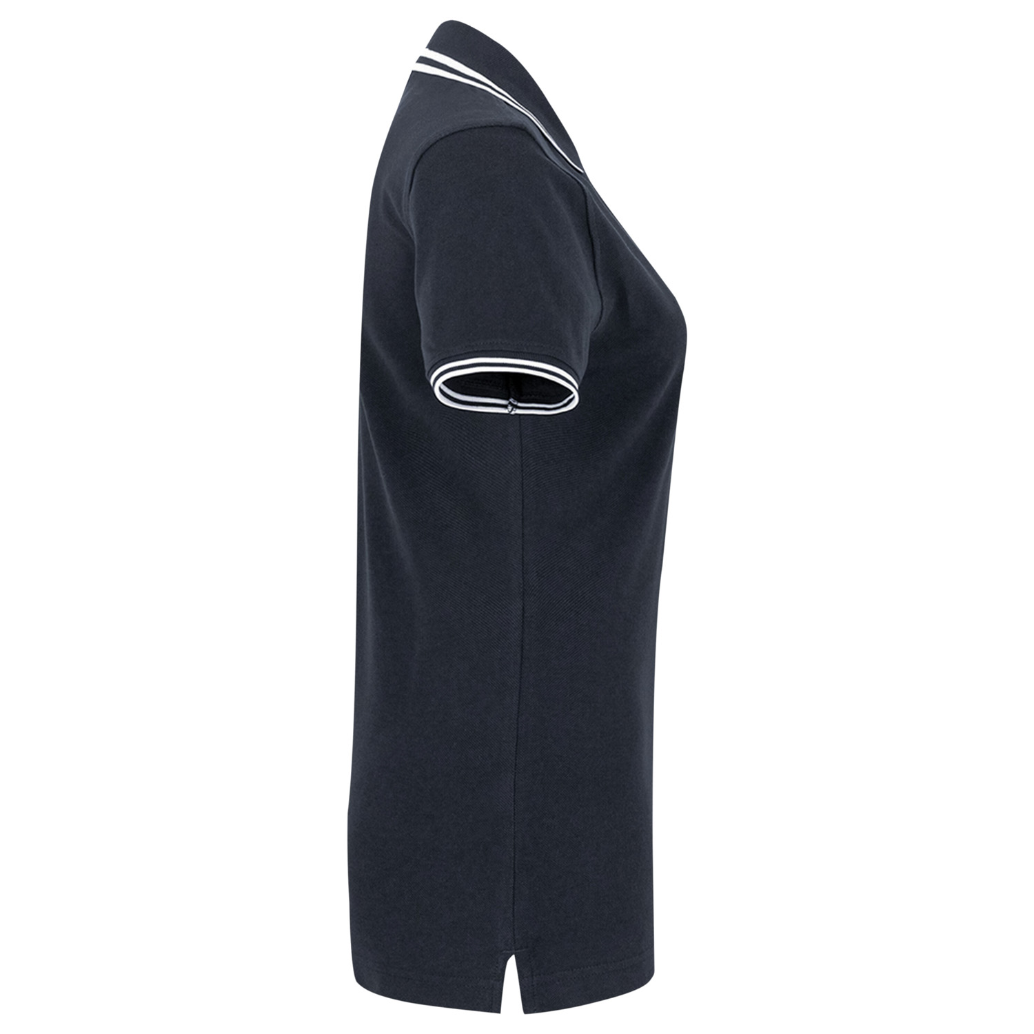 Tailliertes Damen-Poloshirt, kurzärmelig, mit 5 weißen Knöpfen, Kragen und Ärmelrand mit feiner kontrastfarbiger Einfassung, Kragen und Ärmelrand aus Feinripp, Seitenschlitzen mit Verstärkungsnaht, Nackenband, seitlichem Verstärkungsband, Stretchnähten, Nackensattel.Bitte treffen Sie eine Auswahl, um weitere Informationen zu erhalten.Tipp: Diesen Artikel gibt es auch für Herren (hier klicken)