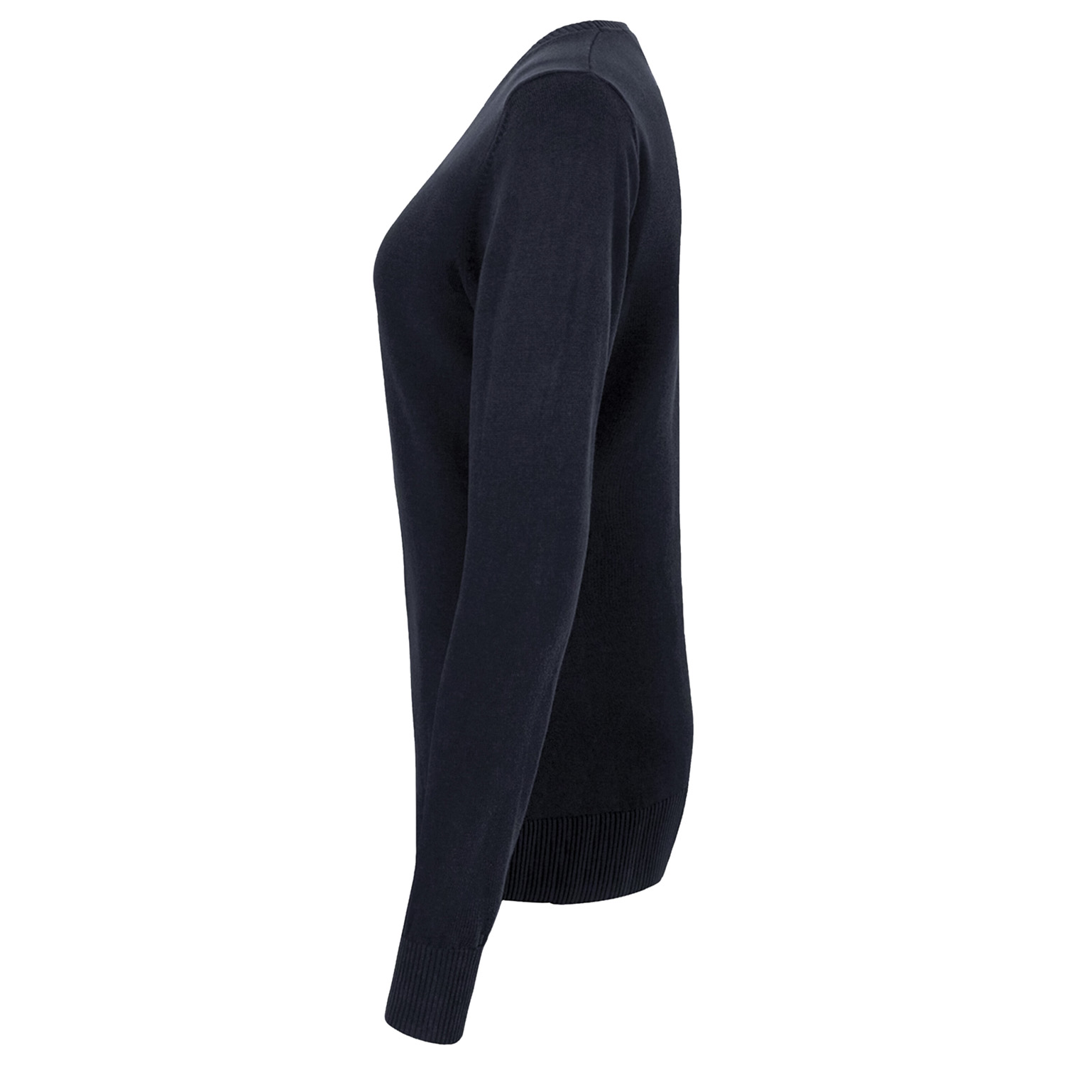 gerippte Bündchen am V-Ausschnitt, Ärmelausschnitt und Saum