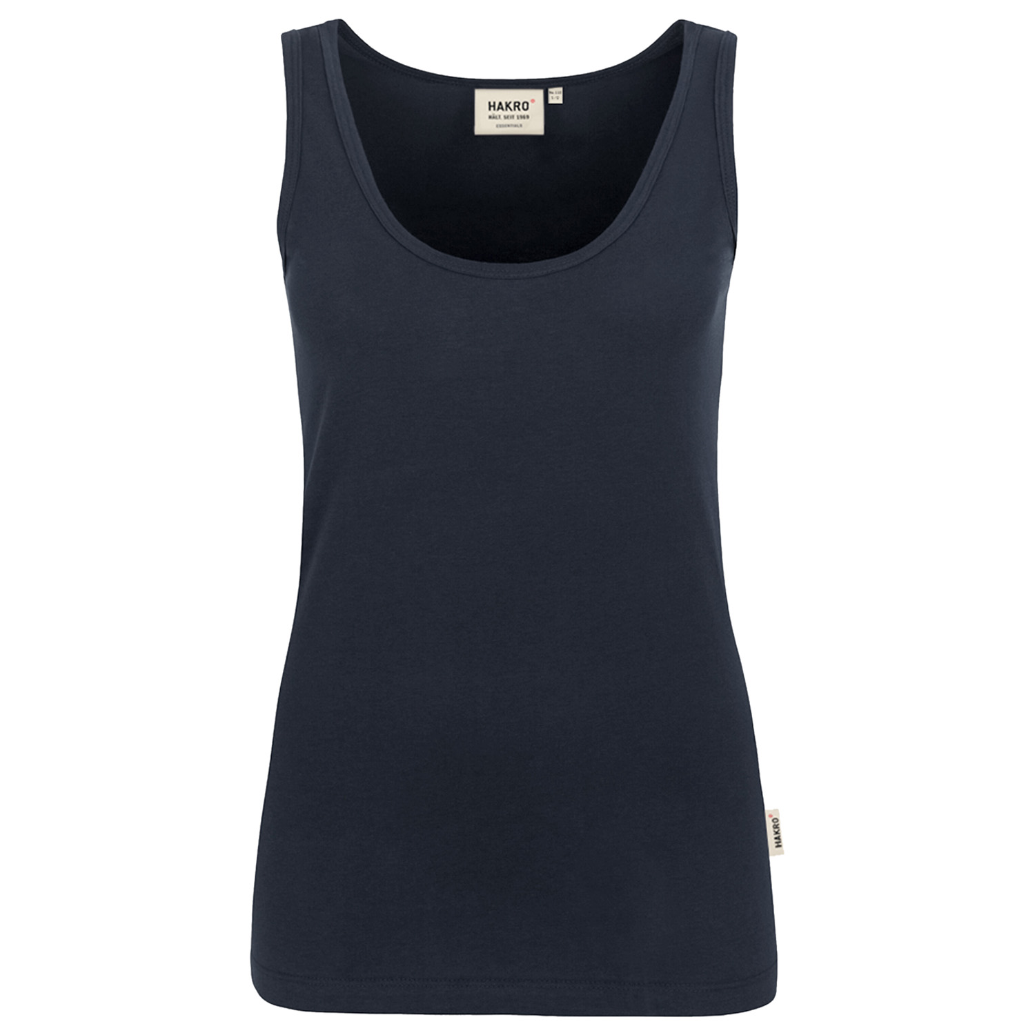 Gewebtes HAKRO-Necklabel aus hochwertigem Kettsatin mit weichen, ultraschallgeschnittenen Bandkanten für höchsten Tragekomfort und gewebtes HAKRO-Flaglabel an der linken Seitennaht.