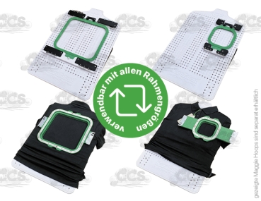 - Variable Aufnahme für die Hoop Talent Grundstation (kompatibel mit allen Maggie Hoop Rahmen sowie den Mighty Hoop Rahmen (bis max. 13“ Tiefe)