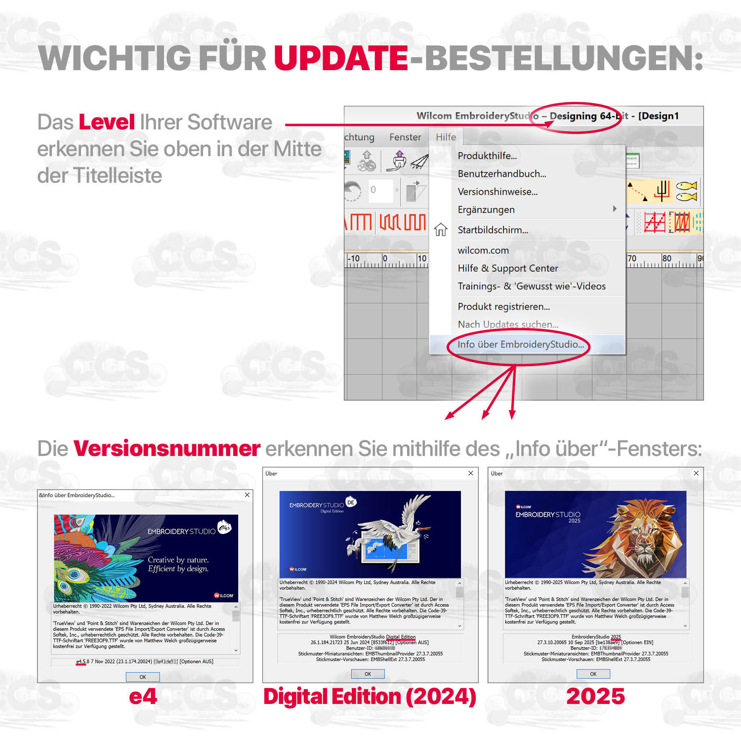 Wilcom Embroidery Studio - DECORATING 2026 - inkl. CorelDraw 2025Neuigkeiten in Version 2026Mit der Funktion „Continue Digitizing” können Sie bestehende geschlossene Objekte einfach weiterdigitalisieren, ohne neu zu starten. So reduzieren Sie Überlappungen und erhalten eine sauberere Color Object List. NEU„Snap to Object“: Eingabepunkte rasten automatisch an Kanten, Knoten und Objekten ein – für eine schnellere und präzisere Digitalisierung. NEU„Separate Pull Compensation“: Zugausgleich unabhängig für jede Seite eines Objekts steuern – ideal für kritische Stoffe und scharfe Konturen. NEU„Streamline Production Export“: Design und Produktionsunterlagen können in einem Schritt exportiert werden – mit vordefinierten Export- und Druckprofilen. NEUVerbesserte Auto-Digitalisierung und Printable Embroidery: verbessertes Auto-Digitizing mit Farb- und Objektoptimierung sowie die Möglichkeit, Designs als hochauflösende PNGs für den Textildruck zu exportieren. NEUJetzt mit CorelDRAW 2025  NEUFlexible Lizenzvarianten - Digitale Lizenz (ohne Dongle): Einfach herunterladen und sofort loslegen. - Hardware-Lizenz (mit Dongle): Ideal für die Nutzung an verschiedenen Rechnern. - Einmaliger Kauf oder Abonnement. Im Abonnement sind alle verfügbaren Elemente enthalten, insgesamt 19 zusätzliche Profi-Funktionen, und Sie erhalten neue Features automatisch per Update. - 14 Tage kostenlos testen. kostenlose DemoEinen Überblick über die Funktionen der Version 2026 erhalten Sie im:  PROSPEKTDie Unterschiede zwischen Designing und Decorating finden Sie in der: ÜbersichtNatürlich auch im monatlichen/jährlichen Abonnement verfügbar: AbonnementDie Versionshinweise 2026 finden Sie hier: VersionshinweiseSchriften: 228 hochwertige Stickschriften (inkl. Greek & Russian, Laufstich-, Outline- und 3D-Schriften) Windows 11 kompatibel / für 64-Bit Systeme entwickelt jetzt OHNE Dongel (mit digitaler Lizenz TrueType-Font Umwandlung (z.B. für japanische, arabische, kyrillische Buchstaben uvm.) Unterteilung in Stickschriften und TTF-Schriften Abstände bei Schriften individuell einstellbar (Abstand zwischen Buchstaben, Worten, Zeilen) 9 verschiedene Grundlinien für Schriften: Gerade, Bogen oben und unten, vertikal, Kreis, freie Form … Hüllkurven für Objekte (Verziehen, Verzerren, etc) verschiedene vordefinierte Schriftformen Stickreihenfolge bei Buchstaben einstellbar Verbindungsauswahl für Schriften mehrzeilige Schriftsegmente in einzelne Zeilen zerlegbar Textzeilen in einzelne Buchstaben, und Buchstaben in Blöcke zerlegbar Buchstaben, Wort- und Zeilenabstände einzeln einstellbar Buchstabenabstand / Kerning vordefinierbar Anzeige-Option: TrueView, Stiche, Nadelpunkte, Bitmaps, Vektoren, Applikationsstoff, Hintergrund, Stickrahmen, Verbindungsstiche, Maschinenfunktionen Objekteigenschaften: automatischer Verzugsausgleich je nach Projekt (auch individuell einstellbar) automatische Unterlagstiche je nach Projekt (auch individuell einstellbar) erweiterte Steppstichunterleger für mehr Stabilität automatische Stickdichte je nach Projekt (auch individuell einstellbar) anpassbare Fadenschnitt-, Einbinde- und Abbindesticheinstellungen eigene Stoffeinstellungen für Verzugsausgleich, Stickdichte etc. verwalten Grafikdigitalisierungswerkzeuge: Werkzeuge zum Digitalisieren von Konturen oder gefüllten Flächen Rechteck, Kreiswerkzeug (Kreis, Stern, Ring) und Formen Winkel hinzufügen, löschen und ändern Hinzufügen, Löschen und Füllen von Löchern in gefüllten Flächen Sticharten: Laufstich, 3-fach Laufstich, Plattstich, Steppstich, ZickZack, Haftstich Stichparameter für alle Sticharten einstellbar Motivfüllungen Vektorkonturen Mehrfachplattstich für 3D-Effekte Bearbeitungswerkzeuge: Skalieren, Umformen, Stiche editieren automatisches und manuelles Messer Winkel einfügen, löschen und ändern Monogramm-Werkzeug mit Umrandungen und Ornamenten Applikationswerkzeug Strass-Steine programmierte / benutzerdef. Stichteilung editiertbar Eckengehrung, Eckenkappung Stichkürzung an engen Stellen, bruchzähliger Abstand Stichfilter (zum automatischen Entfernen von kleinen Stichen) Stiche verarbeiten zur Reduzierung/Erhöhung der Gesamtstichzahl Dichteste Verbindung über Neueinreihung einstellbar Stickdateiobjekte Zerlegen dichteste Verbindung zwischen Objekten automatisch einstellbar Umrandungen um Schriften oder Objekte einfach oder mehrfach hinzufügen Umrandungen als Laufstich, Dreifachlaufstich oder Eingabe C (gleiche Breite) Umrandung mit vordefinierten Formen (Wappen, Kreis, Stern….) Darstellung: stickrealistische Voransicht „TrueView“ Nadelpunkte Verbindungsstiche Maschinenfunktionen Wiederholungen anzeigen Messwerkzeug (Umschaltung mm / inch) Zoom-Funktion: Zoom-Box oder Mausrad Produktvisualisierer Stickrahmendatenbank, -auswahl, eigene Stickrahmen hinzufügen langsames Nachzeichnen (auch in der Echtsicht (TrueView) möglich)  jetzt mit Farbanzeige zum Erleichterten Auffinden der Position Stichliste Design-Bibliothek leichteres Archivieren und Auffinden von Stickdateien weitere Funktionen und Werkzeuge: Vergrößern/Verkleinern von DST-Dateien mit Neuberechnung der Stiche automatische Konvertierung von Grafiken in Stickerei ohne Corel möglich direktes Importieren einer Grafik mit Wilcom, Bearbeitung der Grafik Automatische Bitmap Digitalisierung Virtuelle Dekoration (Export hochauflösender Bilder der Stickreivorschau direkte Musterübertragung zur Stickmaschine neues Stickreihenfolge-Werkzeug (Verschieben der Ebenen) Einfügen von kopierten Objekten an speziellen Positionen Freigabe- und Produktionswerkblatt (Genehmigungsbogen, Farbfilm, Produktionsdetails, Applikationsschnittmuster) Erzeugen von Screenshots der Stickerei Maschinenlaufzeit einstellbar übersichtliche und farbige Benutzeroberfläche eigene Stile und Voreinstellungen anlegen und anwenden Folgende Elemente sind nun standardmäßig in Embroidery Studio Decorating Digital Edition enthalten (die 