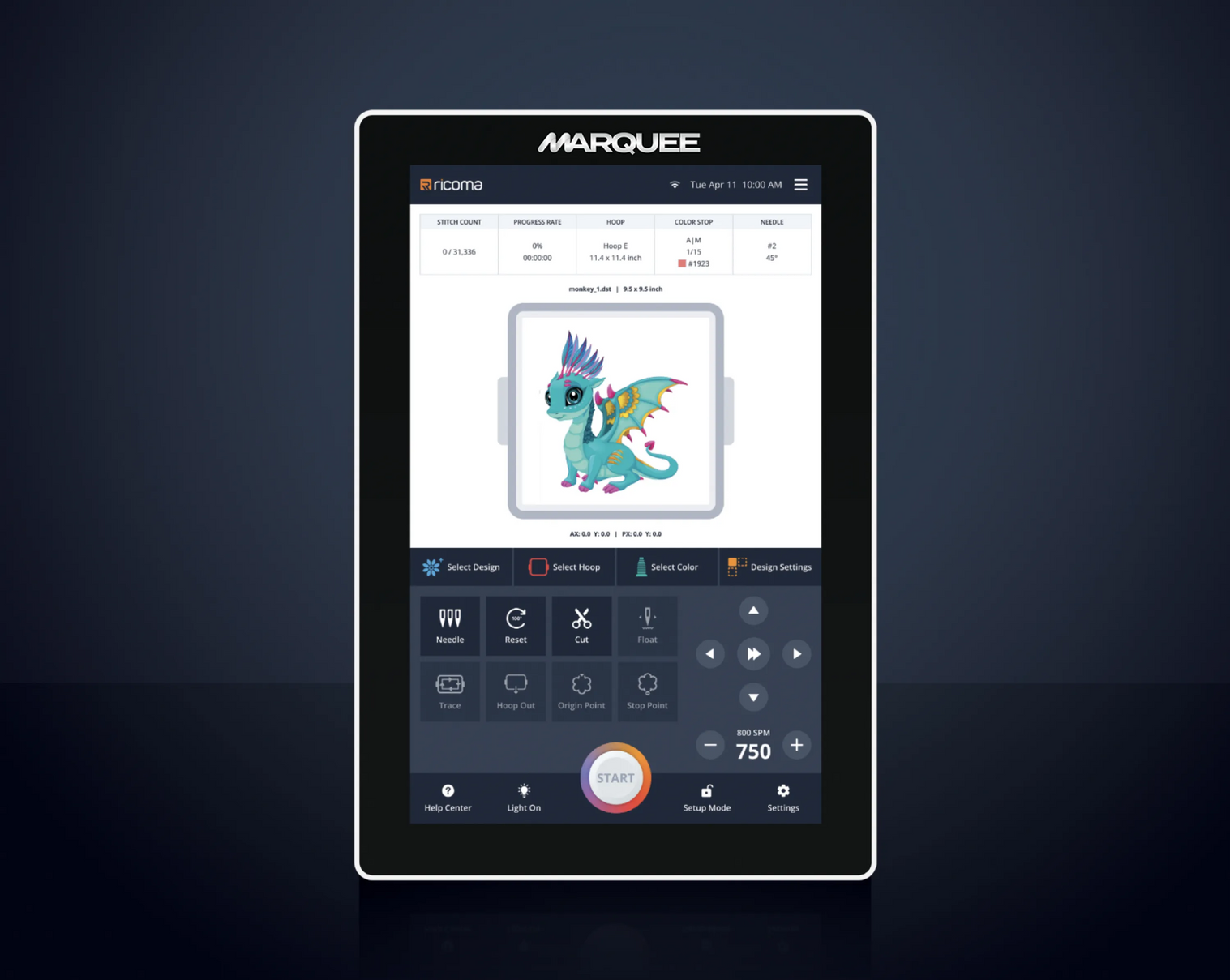 - Das Hauptbedienfeld ist auf der rechten Seite der Stickmaschine, und damit ideal zu erreichen